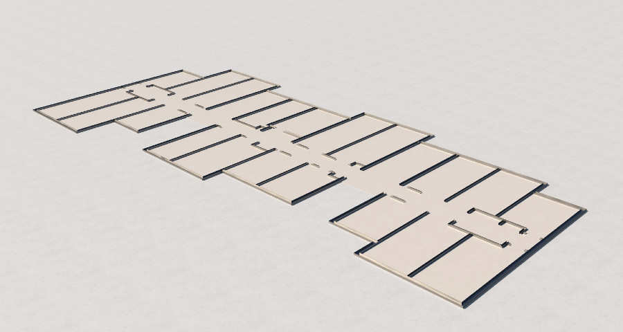 Planning and Construction Phases << planning << >> Next Phase - 2 >> Phase - 1 After the floor is completed, U-shaped metal receptacles are set in alignment with the outline of the walls. << planning << >> Next Phase - 2 >>